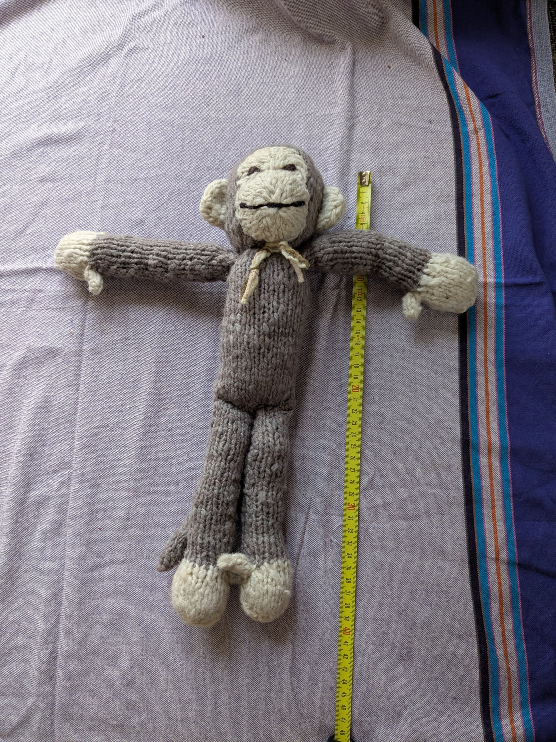 Deze vrolijke, handgebreide knuffel is met veel zorg gemaakt van wol. Met een lengte van 40 cm is hij perfect om mee te knuffelen, maar ook heel geschikt als decoratie in een baby- of kinderkamer.